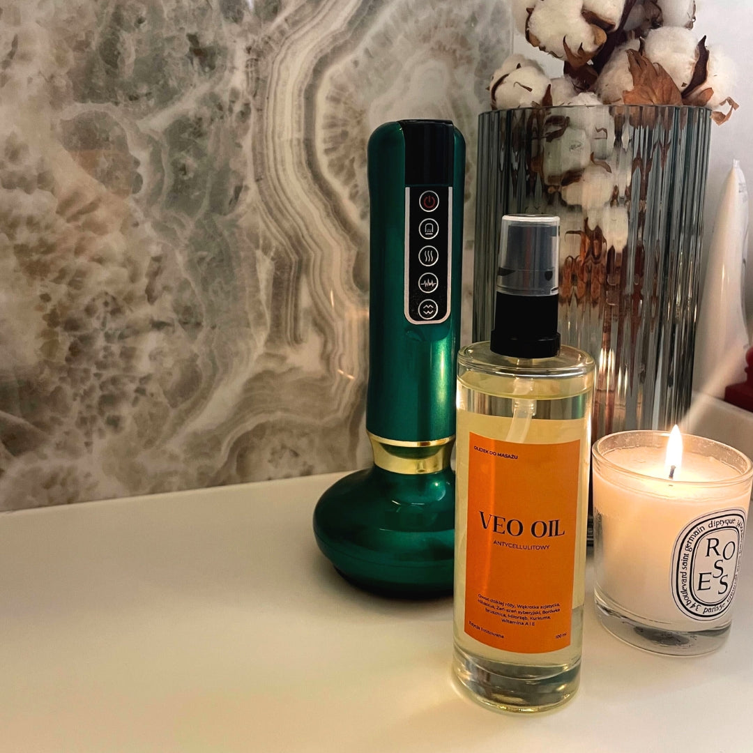 Tak, nasz olejek ma bogatą oleistą konsystencję, dzięki czemu bardzo łatwo się go nakłada i wmasowuje w skórę. Ułatwia masaż skóry oraz zapewnia przyjemny kontakt ze skórą podczas korzystania z akcesoriów Veovac.